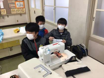 感謝の活動裁縫グループでは、塚本先生指揮のもと、トイレの暖簾や学校行事で使用する雑巾の作製を行なっています。ミシンを使い、学校のみんなに役立つ物を作製することで、感謝の思いを伝えようと一生懸命取り組んでいます。