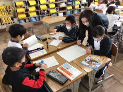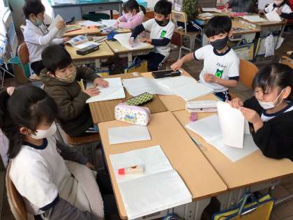 「小学校のことを紹介しよう」という単元で、それぞれの思い出を絵に描いて、原稿を作り、動画で撮るようです。
