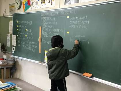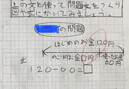 図をかいて、□を使った式を考えて、□にあてはまる答えを出していました。