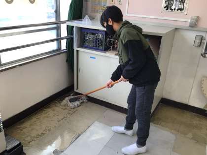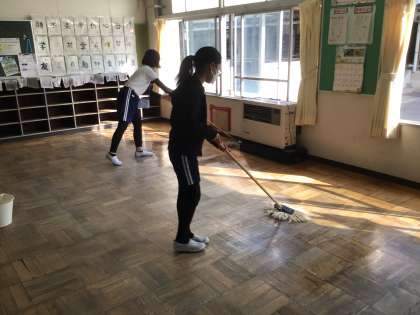 初めてモップを持つ児童もいましたが、初めにやり方を教わり、その後丁寧にワックスがけを行うことができました。