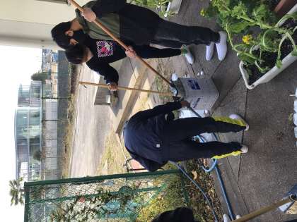 3月7日(火)の6限、5年生の代表児童が、ワックスがけを行いました。