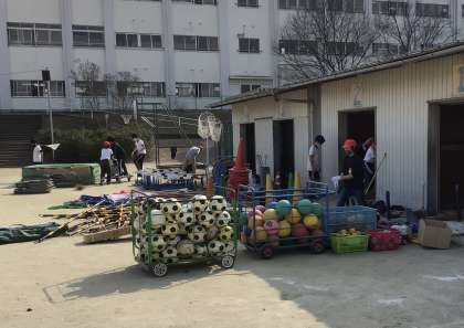 6年生の子たちが作った雑巾で、小清水小学校をきれいにします