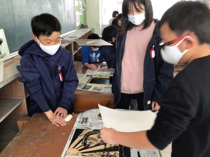 彫刻刀で苦労して彫ってきた分、刷った絵を見て、嬉しさをより感じた子が多くいる印象を受けました。