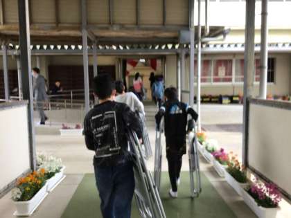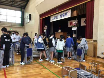6年生の教室が空っぽだと思ったら、もう入学式の片づけを行っていました。