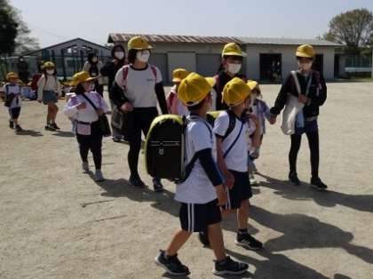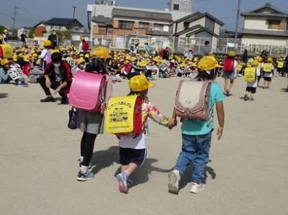 6年生から1年生へ、優しいかかわりのバトンパスができています。
