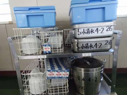 これは、公務手さんや給食の配膳員さんたちが毎日用意してくださっています。