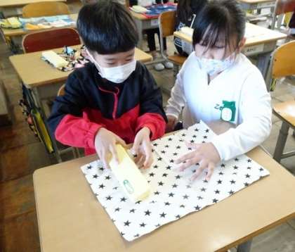 机の上にきちんとナフキンやはしセットが用意されている教室がありました。授業が終わって戻ってきたら、すぐに準備が始められそうです。