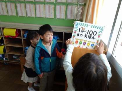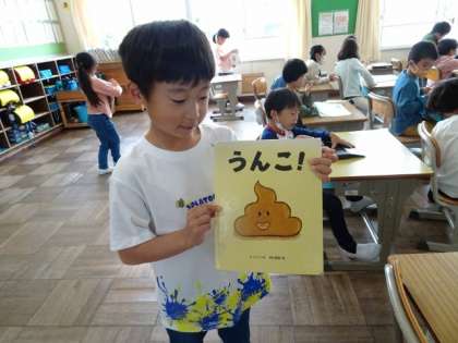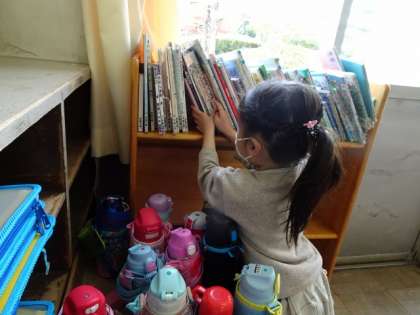 朝の支度が終わった1年生が、本を選んでいました。