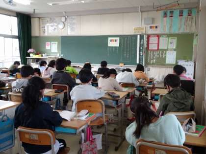 4年生は、国語の授業で音読に挑戦です。