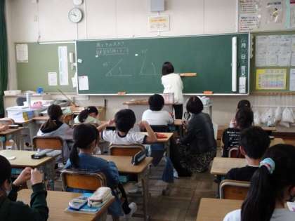 4年生は、分度器を使って勉強をしていました。