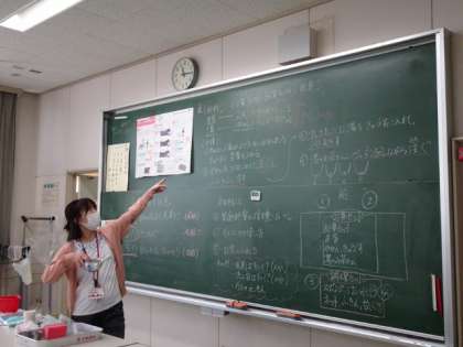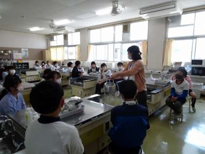 先生の説明を聞きます。家では、IHのため、初めてガスコンロを扱う子がいるかもしれません。真剣に聞いていました。経験は大事です。