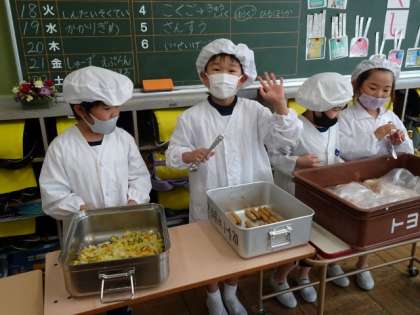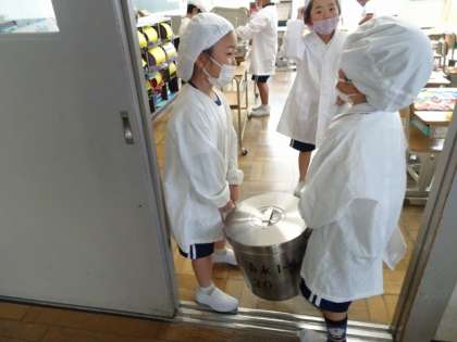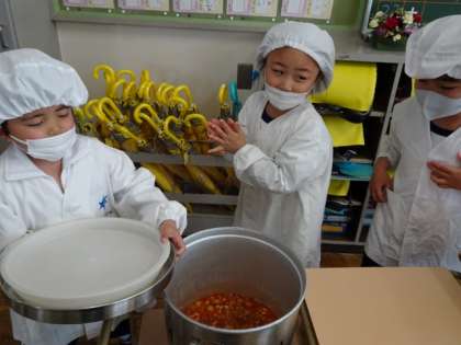 今日の給食は何かな?とふたを開けるわくわく感が「わあ」の声に感じられます。
