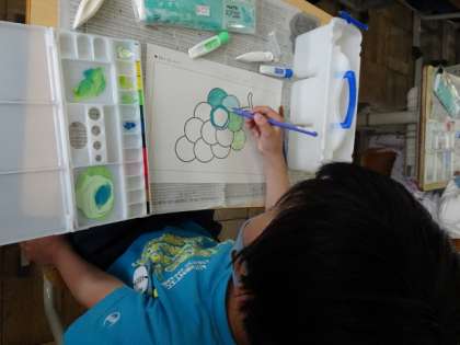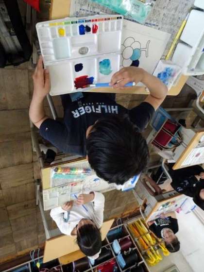 色をまぜあわせていくうちに「コバルトブルーができた」とお気に入りの色が作れて喜ぶ子もいました。