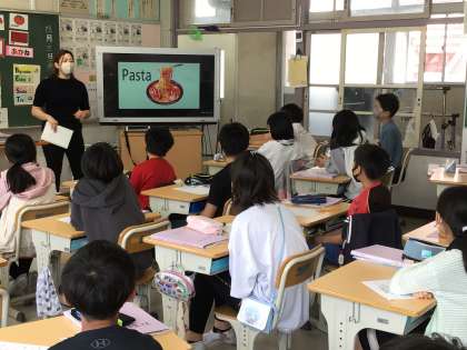 今年度から変更となった新しいALTの先生と一緒に、学習を進めていました。