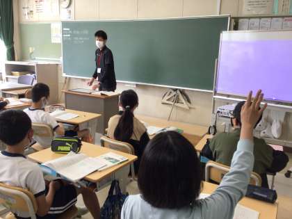 線対称な図形の性質を導入とし、本時は線対称な図形を書いていました。