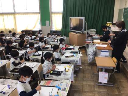 3年生になり、新しい学習が始まっています。上の写真は理科の授業です。生き物のことを勉強しています。下の写真は毛筆の授業です。鉛筆とは違って、筆の倒し具合で太さが変わることを実際に書いて感じました。