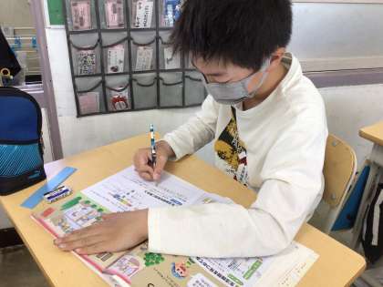 この写真は、6年3組の家庭科の授業の様子です。