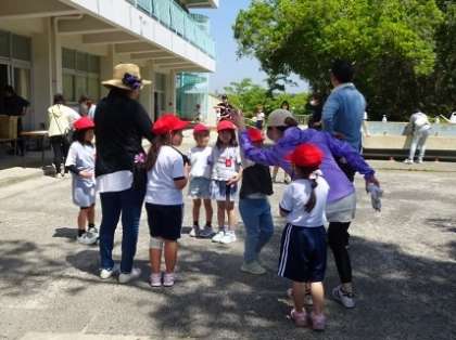 休み時間になりました。出てきた子どもがお母さんたちの姿をみつけてうれしそう!