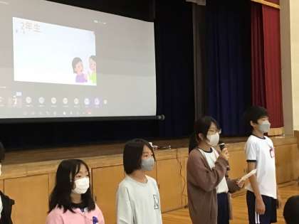 4月からの約一ヶ月間、各学年の子どもたちが頑張ってきたこと&今後の目標について、プロジェクト委員が取材をし、パワポにまとめたことを発表していました。