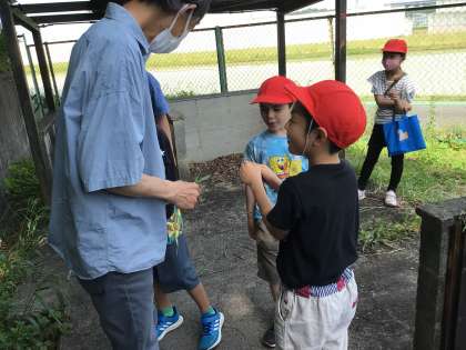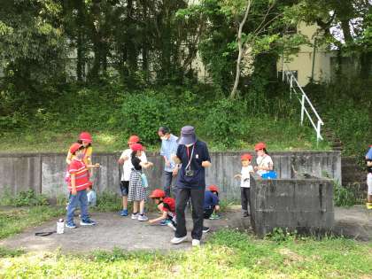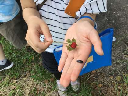 シロツメクサやヘビイチゴ、カエルを見つけました。