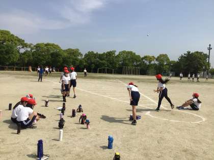 この日は運動場で、50m走・ソフトボール投げの2種目を行いました。
