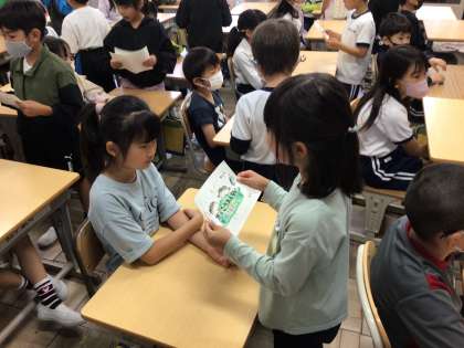 今日は、1年生のために、学校探検を企画してくれた2年生に「ありがとうカード」を渡しに行きました。心を込めてつくったカードを渡せて、うれしかったよ。