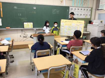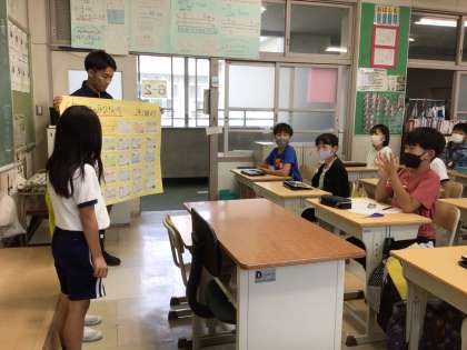 6年生が数週間前に2年生に向かって行った模擬学校探検のおかげで、2年生は1年生と無事学校探検ができたそうです。そのお礼に、2年生が6年生の各クラスにお礼のメッセージを持ってきてくれました。6年生は、とても嬉しそうな表情でした。