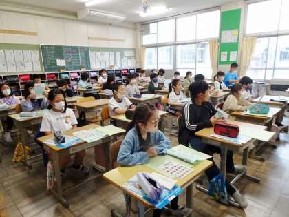 外国語の授業では、12か月の名前を復唱したり、アルファベット順に名前を言ったりしていました。