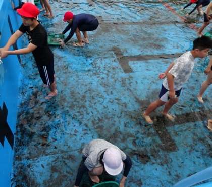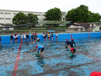 この日は、6年生がきれいにしてくれていましたが、プールサイドは5年生の力できれいになりました。