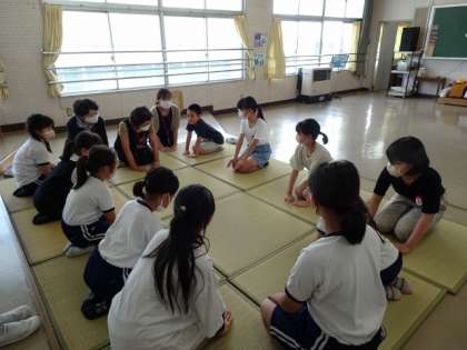 茶道クラブの様子です。 まずは、きちんと座って自己紹介から。