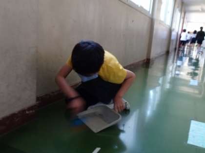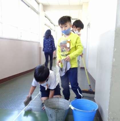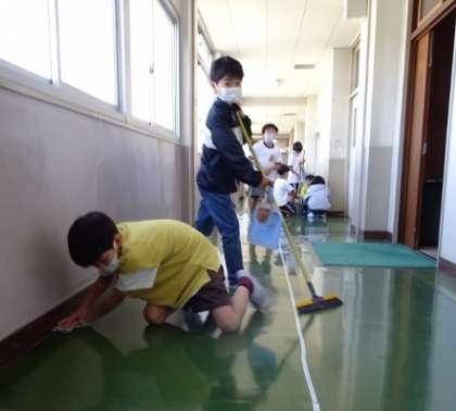 床に膝をついて、隅々まできれいにしていました。ご苦労様。
