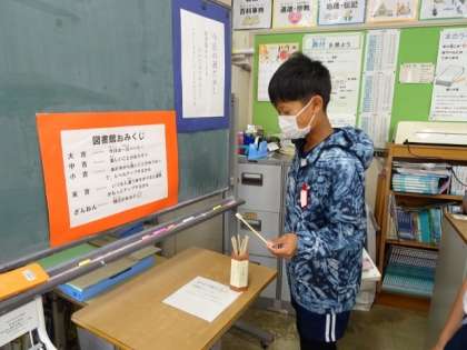 図書室の中では、本を借りたりおみくじを引いたりする子がいました。
