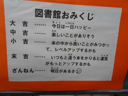 みなさんも、是非図書室に来て、本を借りたりおみくじを引いたりしてください。