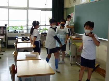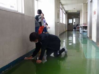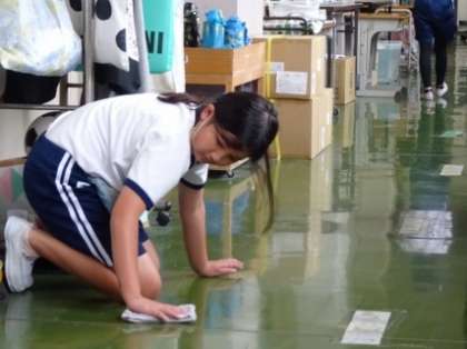子の廊下でも、膝をついて隅々まで吹いている子が多かったです。