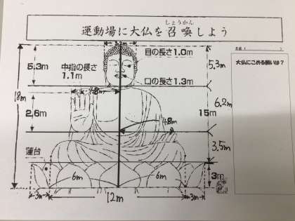 社会の授業で奈良の大仏の大きさや歴史について学習する中で、「実際の大きさを知りたい!」という児童の思いがきっかけでした。