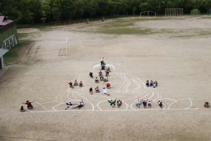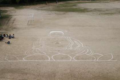 なんと、運動場に奈良の大仏が出現しました。