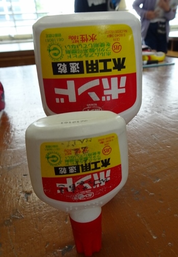 ボンドを2つ用意している子もいました。礼のあと、机の上に載っていたボンドの置き方がかわいかったので、思わず撮らせてらせてもらいました。