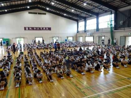 今年度から、全校入っての集会にしました。3年ぶりのことでしょうか。全員そろうと圧巻です。。