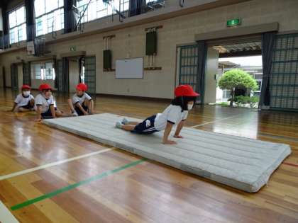 あざらし歩きは、腕の力だけで移動するので、難しそうです。