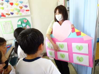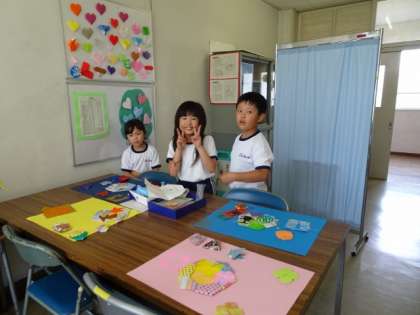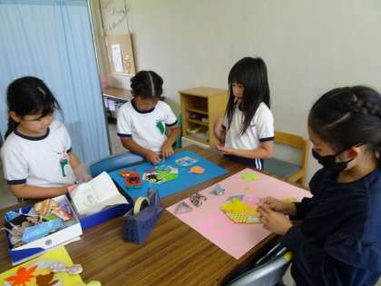 小清水タイムの様子です。心の相談員さんといっよに部屋の飾りつけを作ったり、おみくじの用意を頼まれたりして、なかよく活動していました。