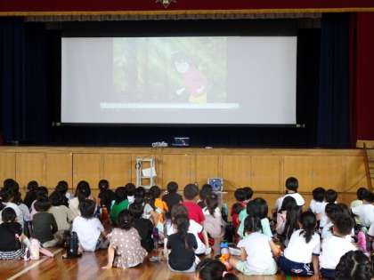 豊田市が市制70周年を記念した事業として作られた「神在月のこども」を1年生が視聴しました。