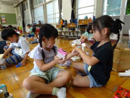 子ども達が楽しんで作れるために、いろいろな箱などを準備してくださってありがとうございます。ご家庭の協力なしでは、十分な充実した活動ができません。これからもよろしくお願いします。