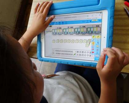 学習用タブレットを使って仕組みを学ぶことができるオリジナル教材で学んでいました。