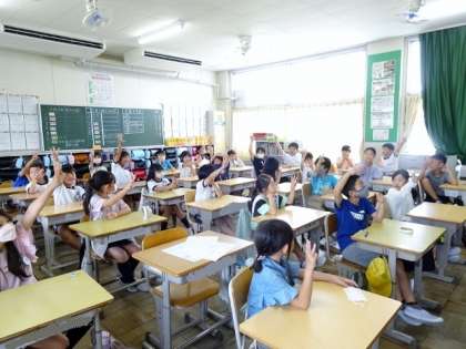 「豊田市の図書館には何冊本があるでしょう」という質問には、たくさんの子が反応し、蔵書数の多さに驚いていました。