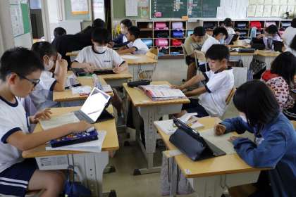 5年生の国語では、「環境問題を報告しよう」という単元を行っています。様々な環境問題についてしらべ、パワーポイントにまとめています。初めて使うパワーポイントのソフトの使い方や情報を整理してまとめることに苦戦しつつも、班メンバーと協力しながら作業をすすめています。