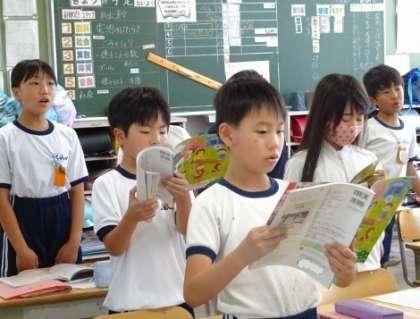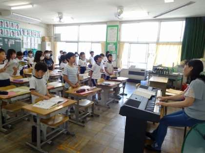 素敵な声が響いてくるなあと声にひかれて教室に向かうと、4年生が歌っていました。