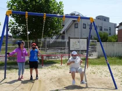 走る子、ボールで遊ぶ子、遊具で遊ぶ子
