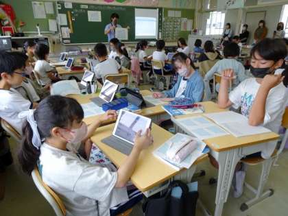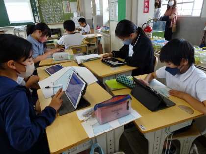 教室の前に、子どもたちが学習用タブレットで作成した作品を紹介しているクラスもありました。見ていただきありがとうございました。