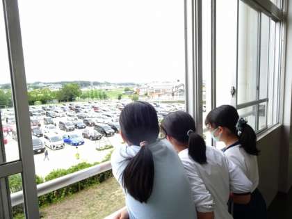 参観後、帰っていく保護者の方を見送る子どもたちがいました。