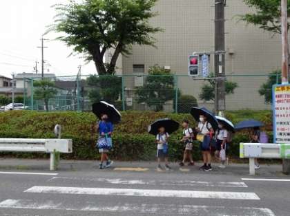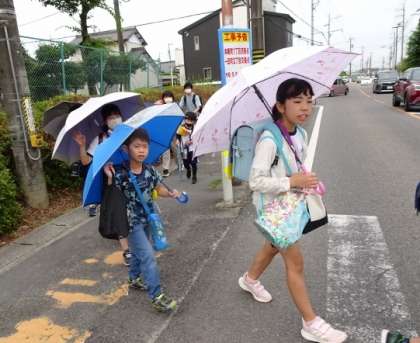 横断歩道や交差点では、車が来ないか自分の目で確認してください。前の子についていってしまうと大変危ないです。